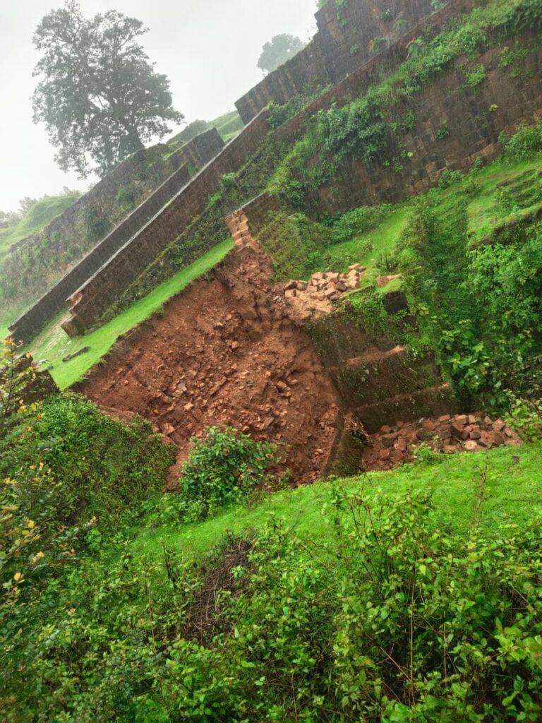 ಹೊಸನಗರ: ತಾಲ್ಲೂಕಿನ ಐತಿಹಾಸಿಕ ಸ್ಥಳವಾದ ಬಿದನೂರು ಕೋಟೆಯ ಒಳಭಾಗದಲ್ಲಿರುವ ಕೊಳದ ದಂಡೆ ಸಂಪೂರ್ಣ ಕುಸಿದು ಹೋದ ಘಟನೆ  ನಡೆದಿದೆ. ತಾಲ್ಲೂಕಿನ ಬಿದನೂರು ಕೋಟೆಯ ಸುತ್ತ ಮುತ್ತ ಭಾನುವಾರ ಹೆಚ್ಚಿನ ಪ್ರಮಾಣದಲ್ಲಿ ಮಳೆ ಸುರಿದಿದ್ದು ಕುಸಿತಕ್ಕೆ ಕಾರಣವಾಗಿದೆ.