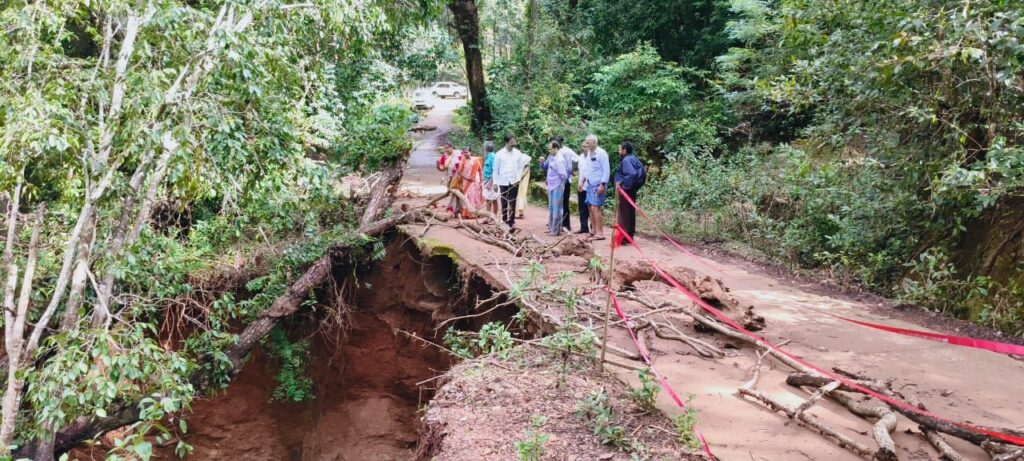 ರಿಪ್ಪನ್ ಪೇಟೆ : ಹೊಸನಗರ ತಾಲ್ಲೂಕಿನ ಪುರಪ್ಪೆಮನೆ ಮಾರ್ಗವಾಗಿ ಸಾಗರ ತಾಲ್ಲೂಕಿನ ಬಿಲಗೋಡಿ, ತಾರನಬೈಲು ಸಂಪರ್ಕಿಸುವ ರಸ್ತೆ ಕುಸಿತಗೊಂಡ ಹಿನ್ನೆಲೆಯಲ್ಲಿ ಮಾಜಿ ಸಚಿವರು ಹಾಗೂ ರಾಜ್ಯ ಬಿಜೆಪಿ ಉಪಾಧ್ಯಕ್ಷರಾದ ಹರತಾಳು ಹಾಲಪ್ಪ ಅವರು ಇಂದು ಸ್ಥಳಕ್ಕೆ ಭೇಟಿ ನೀಡಿ ಪರಿಶೀಲನೆ ನಡೆಸಿದರು.