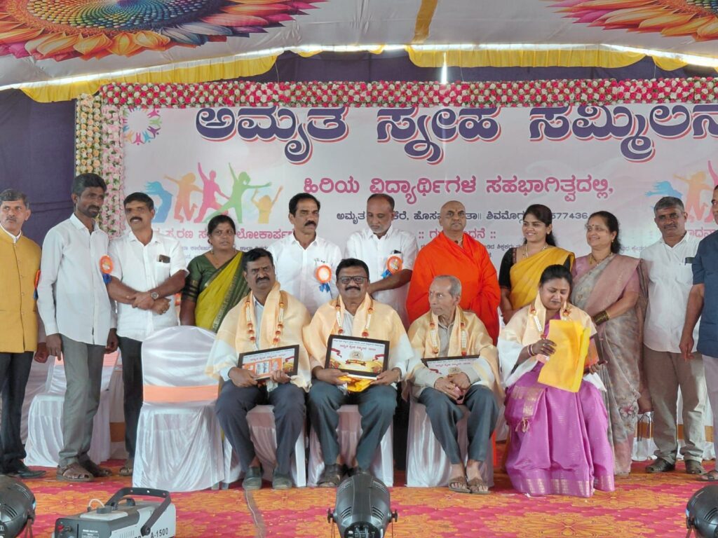 ರಿಪ್ಪನ್ಪೇಟೆ: ಅಮೃತ ಸರ್ಕಾರಿ ಪದವಿ ಪೂರ್ವ ಕಾಲೇಜಿನ ಆವರಣ ಭಾನುವಾರ ಅಮೃತ ಸ್ನೇಹ ಸಮ್ಮಿಲನ ಸಮಿತಿ ಹಾಗೂ ಹಿರಿಯ ವಿದ್ಯಾರ್ಥಿಗಳ ಸಹಭಾಗಿತ್ವದಲ್ಲಿ ಆಯೋಜಿಸಿದ ಅಮೃತ ಸ್ನೇಹ ಸಮ್ಮಿಲನ, ಶಾಲಾ ಪುನರ್ಮಿಲನ ಮತ್ತು ಶಿಕ್ಷಕರ ಸಮಾಗಮ ಕಾರ್ಯಕ್ರಮವು ನೂರಾರು ವಿದ್ಯಾರ್ಥಿಗಳು, ಶಿಕ್ಷಕರು, ಹಳೆಯ ವಿದ್ಯಾರ್ಥಿಗಳು ಮತ್ತು ಗಣ್ಯರಿಂದ ಕಂಗೊಳಿಸಿತು.