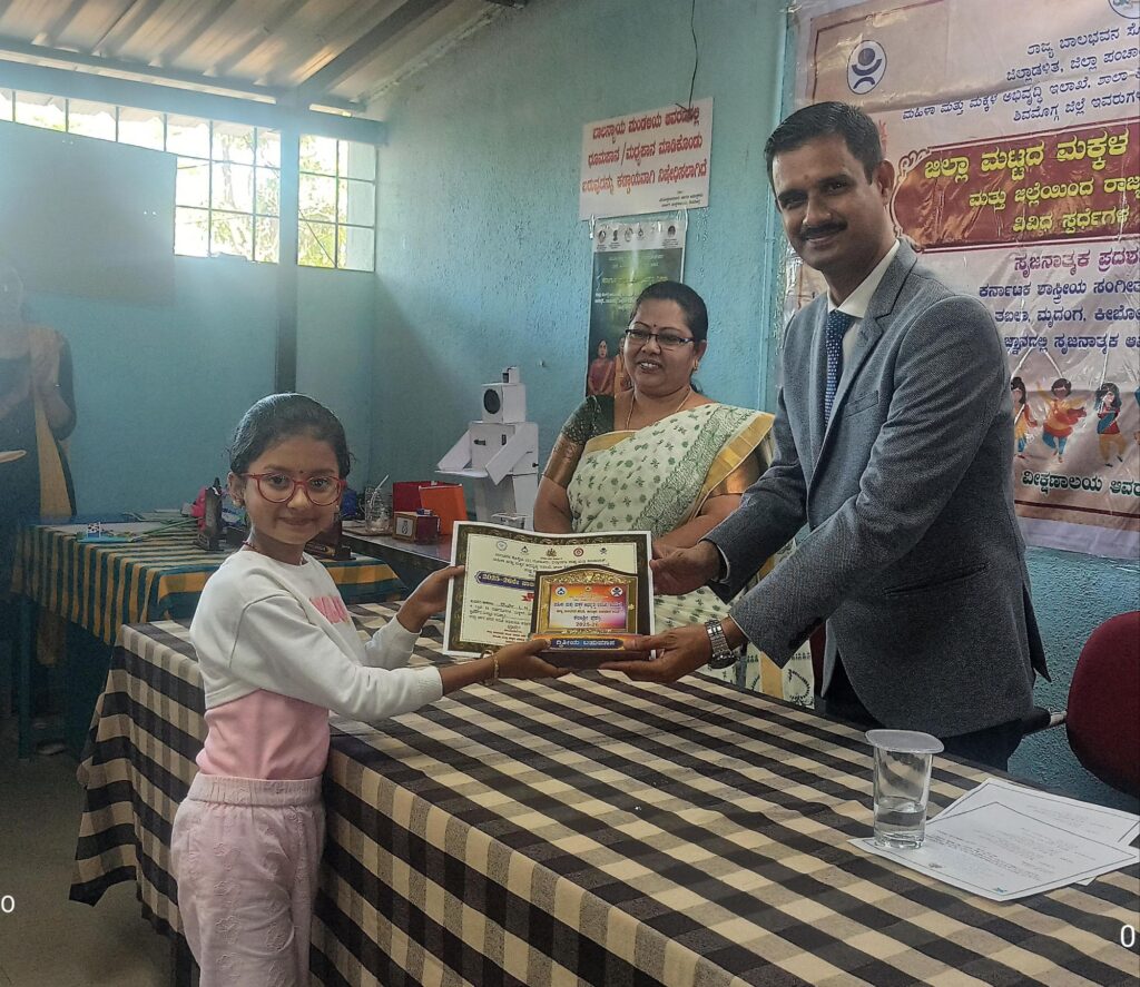 ಹೊಸನಗರ: ಶಿವಮೊಗ್ಗ ಜಿಲ್ಲೆ ಮಹಿಳಾ ಮತ್ತು ಮಕ್ಕಳ ಕಲ್ಯಾಣ ಇಲಾಖೆ ಇತ್ತೀಚೆಗೆ ಆಯೋಜಿಸಿದ ಜಿಲ್ಲಾ ಮಟ್ಟದ ಸಂಗೀತ ಕಾರ್ಯಕ್ರಮದಲ್ಲಿ ಭಾಗವಹಿಸಿದ ಹೊಸನಗರ ಪಟ್ಟಣದ ಗುರೂಜಿ ಇಂಟರ್ ನ್ಯಾಷನಲ್ ಶಾಲೆಯ ವಿದ್ಯಾರ್ಥಿನಿ ಎಲ್. ಹೆಚ್.ಆರ್ವಿ ಪ್ರಥಮ ಸ್ಥಾನದಲ್ಲಿ ವಿಜೇತರಾಗಿ ರಾಜ್ಯ ಮಟ್ಟಕ್ಕೆ ಆಯ್ಕೆ ಆಗಿದ್ದಾಳೆ. ವಿದ್ಯಾರ್ಥಿನಿ ಸಾಧನೆಗೆ ಶಾಲೆಯ ಆಡಳಿತ ಮಂಡಳಿ, ಸಿಬ್ಬಂದಿ, ಪೋಷಕರು ಅಭಿನಂದಿಸಿದ್ದಾರೆ.